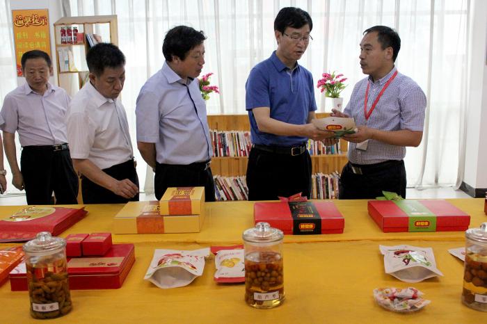 子公司总经理张发彦向前来考察的领导介绍了沧州开云kaiyun枣业有限公司近几年的经营发展状况。在其陪同下,王立伟一行先后参观了展厅及生产车间,观摩了一线员工的生产活动,详细了解了红枣生产、加工、销售以及产业链延伸等情况。