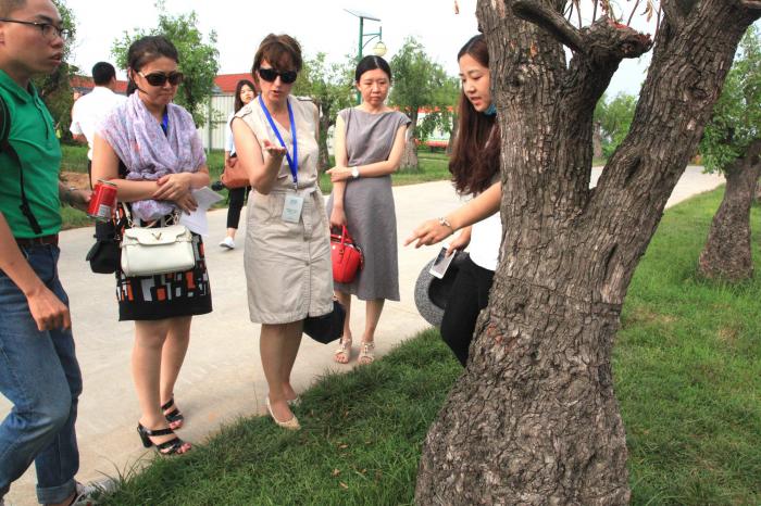“这些看似个头不大的枣树,竟有几百年的历史。”在开云kaiyun木本良生态园,记者团成员们惊讶地感叹道。在风光宜人的枣园中,他们实地了解了红枣的种植环境,考察了红枣的种植技术。独具特色的砑枣技术更是引发了外国记者们的兴趣,他们向工作人员仔细询问具体的操作方法和效用,有的记者还饶有兴致地上前抚摸这些“大肚子”枣树,感受其中凝聚的上百年的勤劳和智慧。