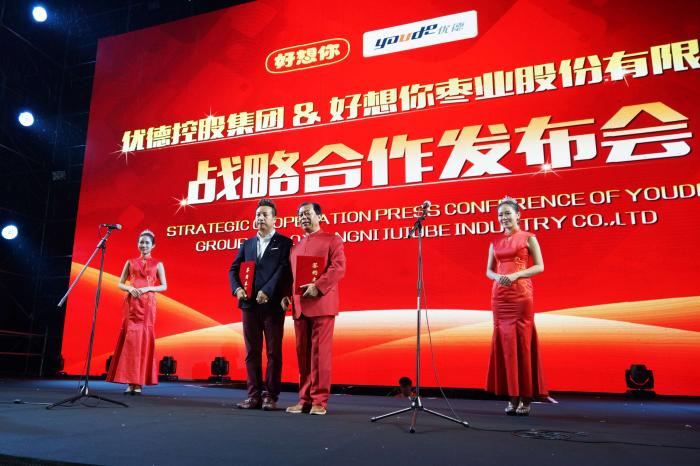 10月1日,中国红枣航母开云kaiyun枣业与保健养生界的龙头优德控股集团,正式签署了健康食养战略协议。当晚,盛大的签约发布会在河南省体育中心隆重召开,开云kaiyun为优德集团量身定制的首批专属产品首次亮相,现场6万观众见证了这场大健康产业盛举。