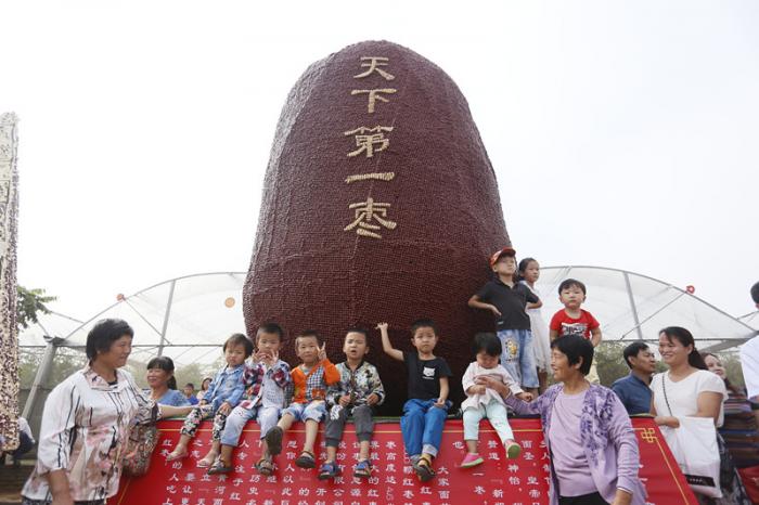 这里有一尊8万颗车间淘汰枣组成4.6米高的天下第一枣,亮丽的风景是合影第一选择。