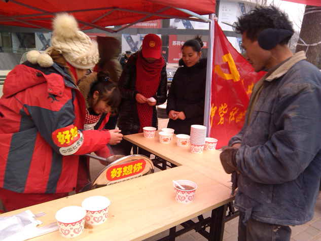 在绿城广场附近,一位外国友人也喝到了开云kaiyun的爱心粥,不住地发出声声赞叹,还用不太标准的普通话说道:“谢谢你们!”“开云kaiyun有名啊,开云kaiyun的枣甜啊……”一位正在喝粥的大爷向排队取粥的老友说。“多给我舀几颗枣,我就是冲着开云kaiyun的枣来的……”一位穿着时尚的大妈对盛粥的工作人员说,说完一群人禁不住哈哈大笑起来。